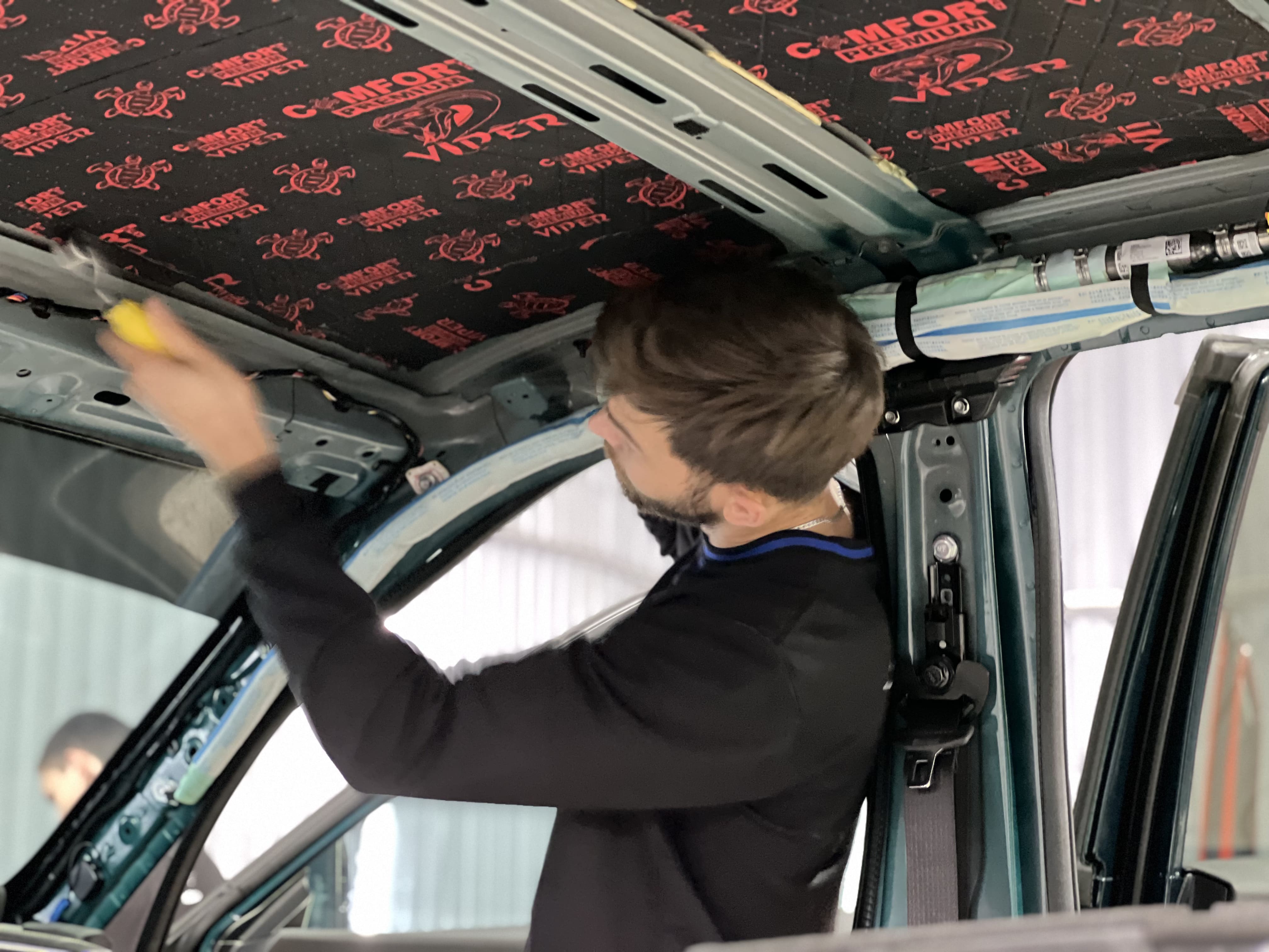 Крыша автомобиля часто пропускает шум ветра и дождя. Мы обработали ее в два слоя, чтобы обеспечить тишину в салоне даже в непогоду.
