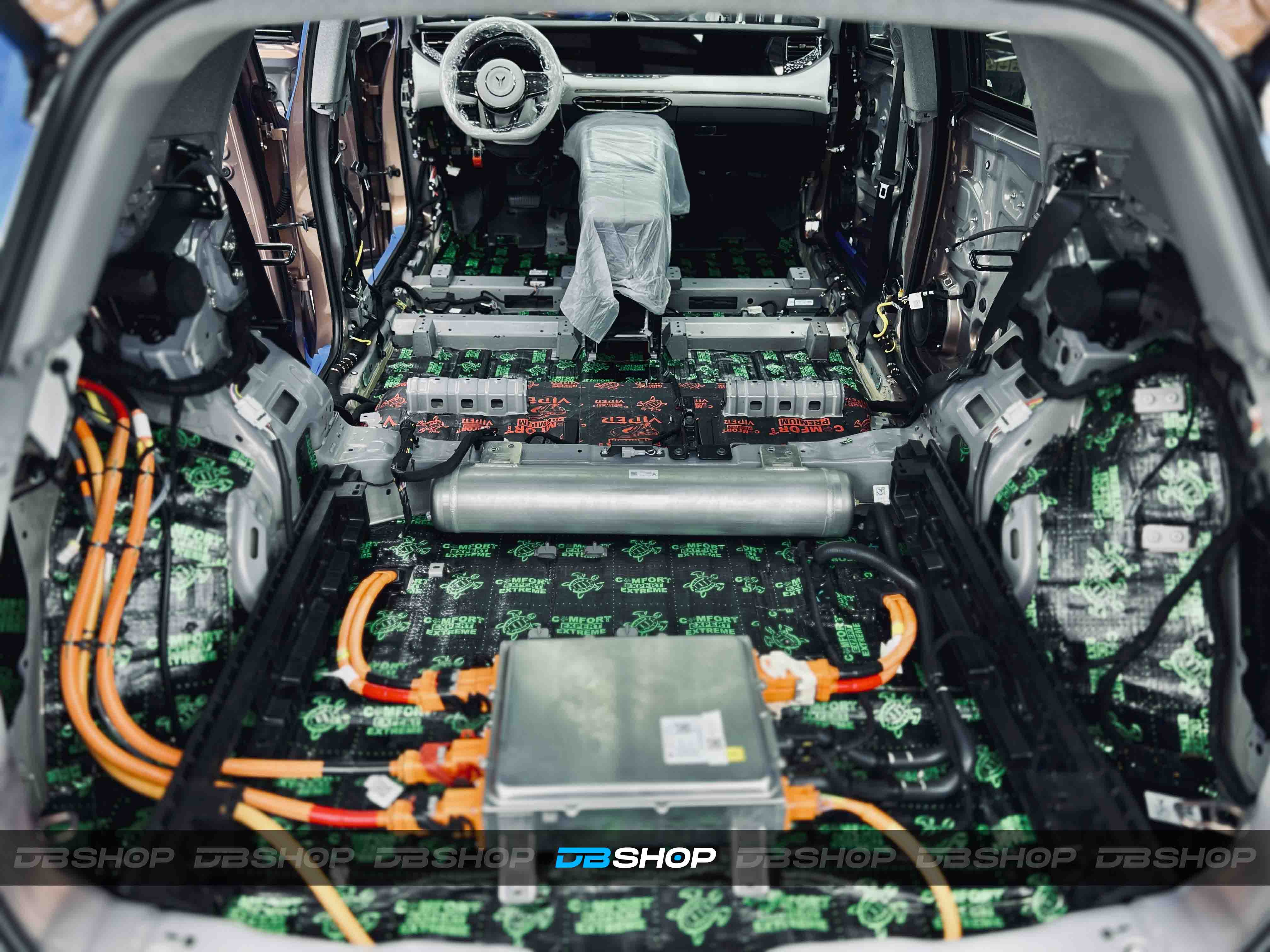 Для дополнительного шумопоглощения в стенки по всему автомобилю добавили мягкие блоки Comfort Mat Soundtrap Green, которые снижают уровень шума в салоне на 70%.