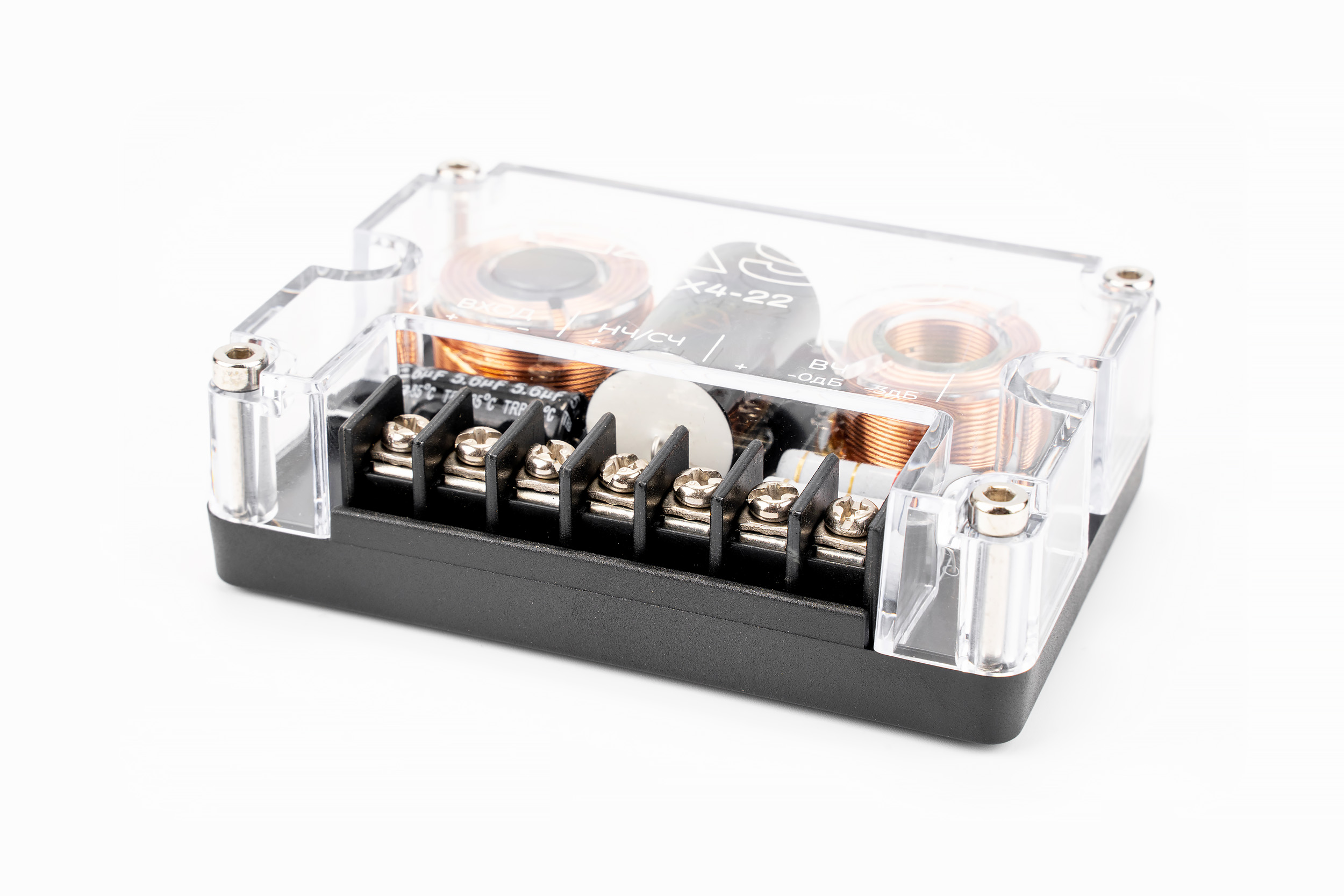 Стандартный двухполосный кроссовер для автоакустики второго порядка. Поставляется в корпусе из пластика. Применяется в качестве фильтрующего элемента EXPO Classics 3 и 4 линии. Имеет классическую конструкцию, включающую индуктивные катушки с медной намоткой, конденсаторы пленочного типа с небольшим запасом напряжения. Подстраивать уровень твитера помогает аттенюатор.